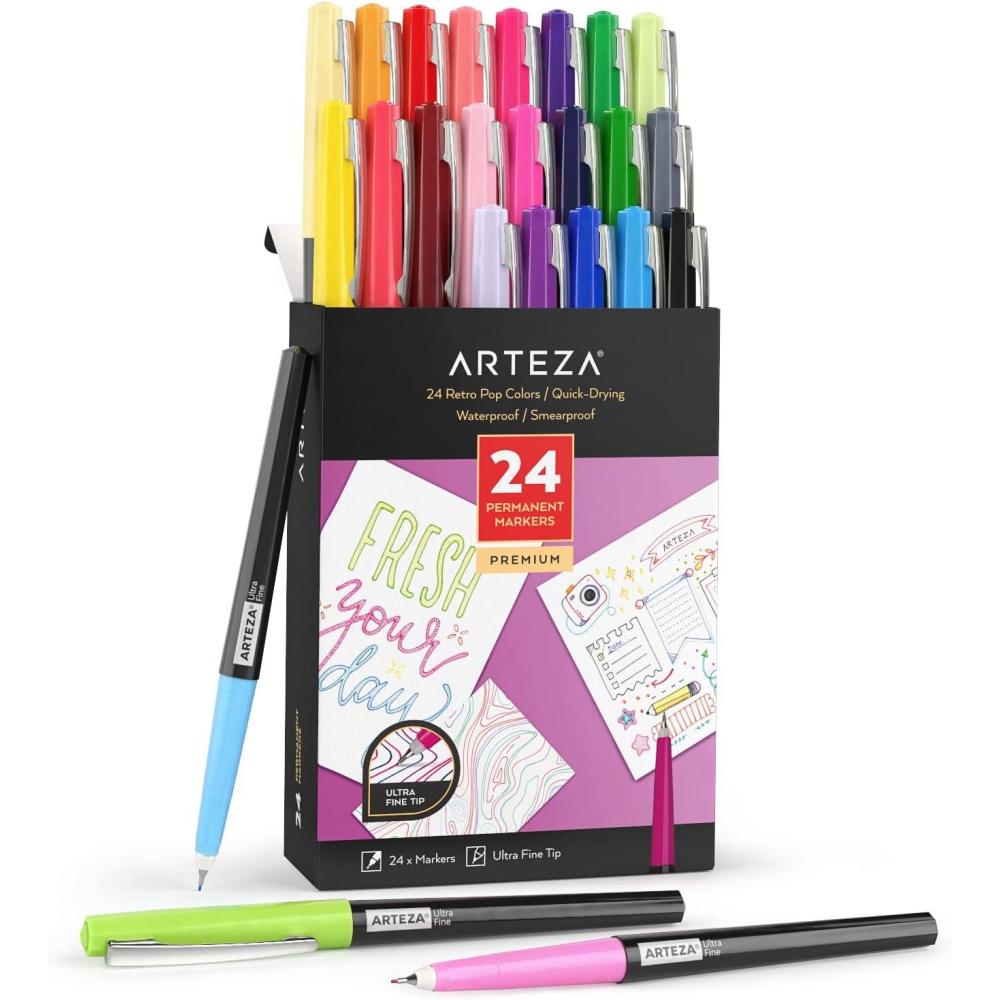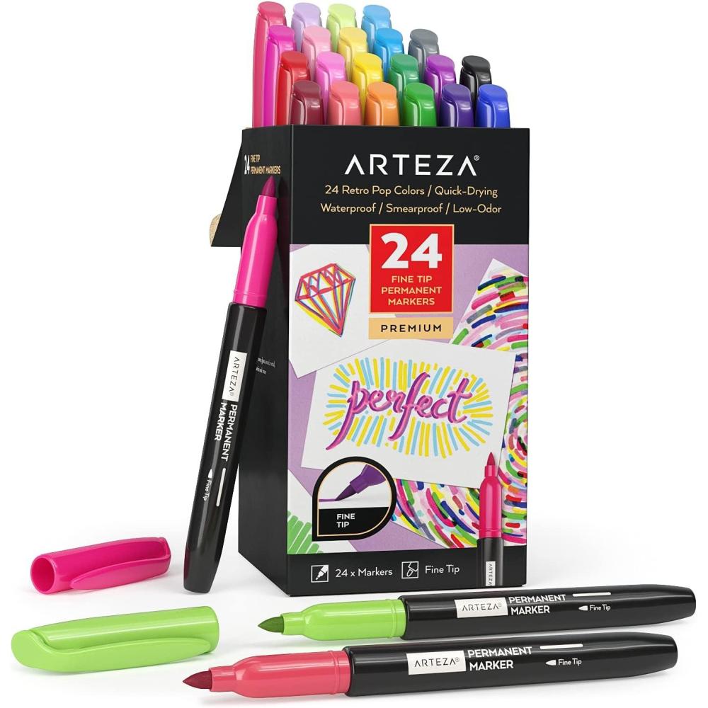 ARTEZA Permanent Markers, Set of 24, Fine Tip, Retro Pop Colors(24 Retro Pop Colors)
