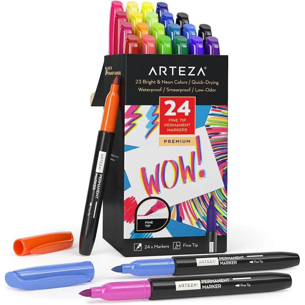 ARTEZA Permanent Markers, Set of 24, Fine Tip, Retro Pop Colors(Set 24 23 Bright & Neon Colors)
