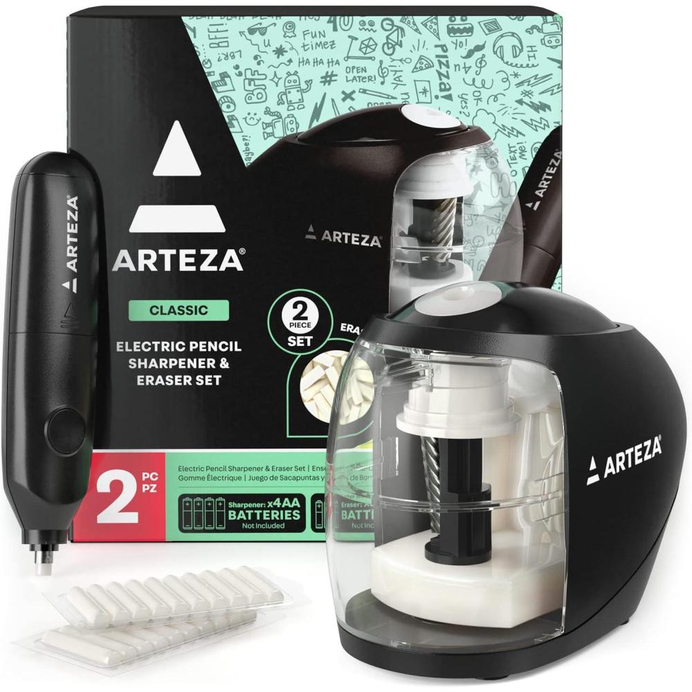 Arteza Pencil Sharpener and Electric Eraser Set, Black, for 8-mm Pencils, 20 Eraser Refills, Office Supplies for Teachers, Students, Classrooms, and Art Studios(Sharpener and Eraser)