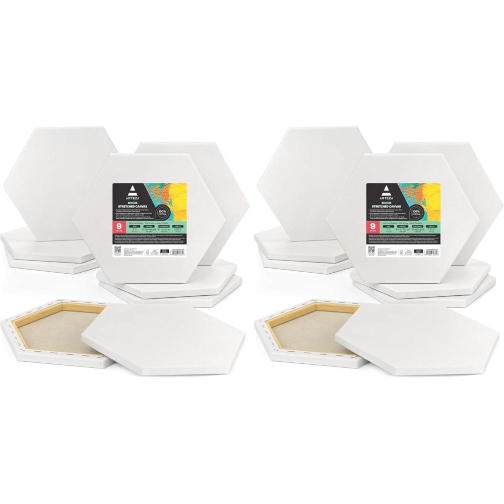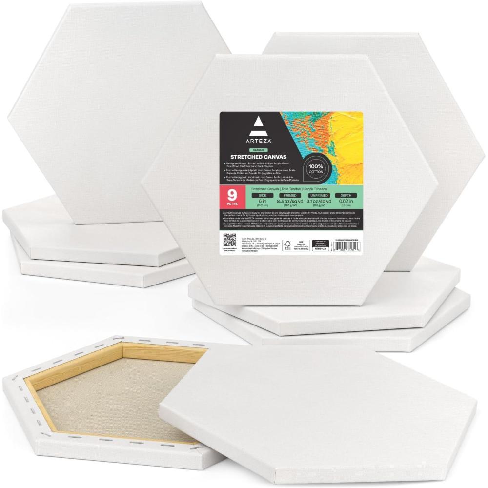 ARTEZA Hexagonal Stretched Canvas, 6 Inch Side, Pack of 9, Blank White Canvas Boards for Acrylic, Oil and Gouache Painting(6 inch)