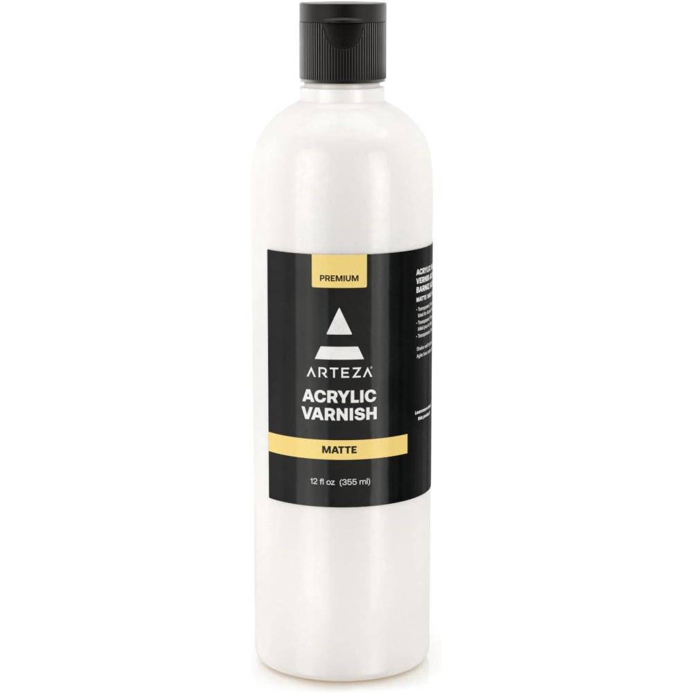 ARTEZA Satin Acrylic Varnish 12oz/355ml, UV-Protective, Clear Finish for Canvas, Wood & More – Protect Against Dust, Dirt and Scratches(matte)