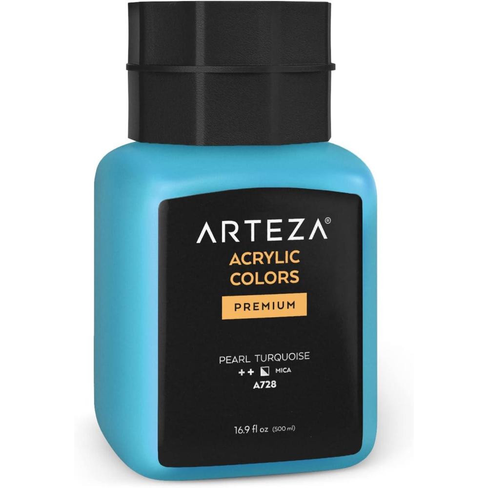 ARTEZA Acrylic Paint, A104 Yellow Ochre, 16.9 fl oz, 500ml Jar, Opaque, Quick-Drying, Acrylic Paints for Painting on Canvas, Paper, Wood(A728 Pearl Turquoise)