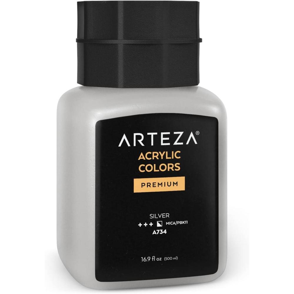 ARTEZA Acrylic Paint, A104 Yellow Ochre, 16.9 fl oz, 500ml Jar, Opaque, Quick-Drying, Acrylic Paints for Painting on Canvas, Paper, Wood(A734 Silver)