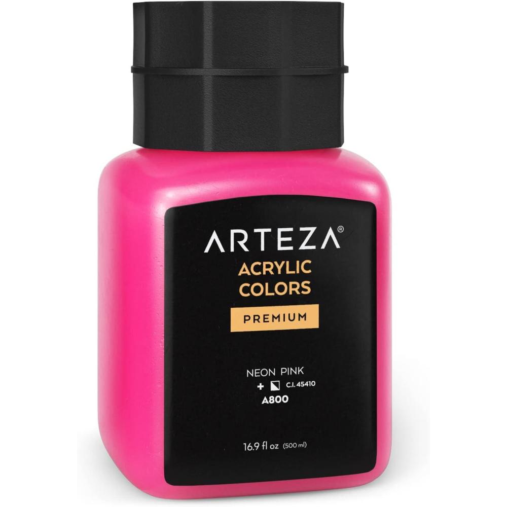 ARTEZA Acrylic Paint, A104 Yellow Ochre, 16.9 fl oz, 500ml Jar, Opaque, Quick-Drying, Acrylic Paints for Painting on Canvas, Paper, Wood(A800 Neon Pink)